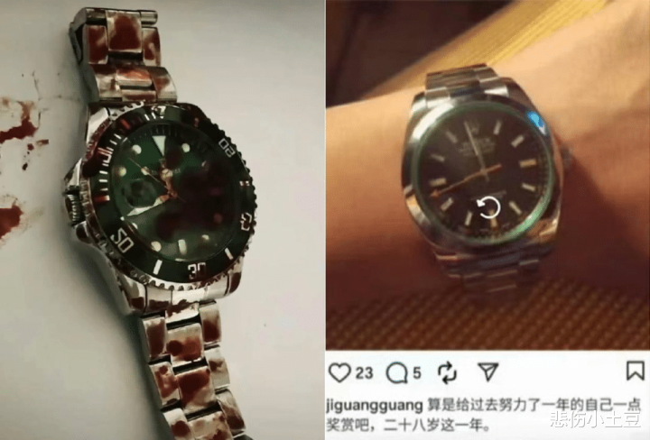 紧接着又有网友晒出一张带血劳力士的手表,称和极光光收藏的手表吻合。如今管理员辟谣,称这块劳力士是假的。